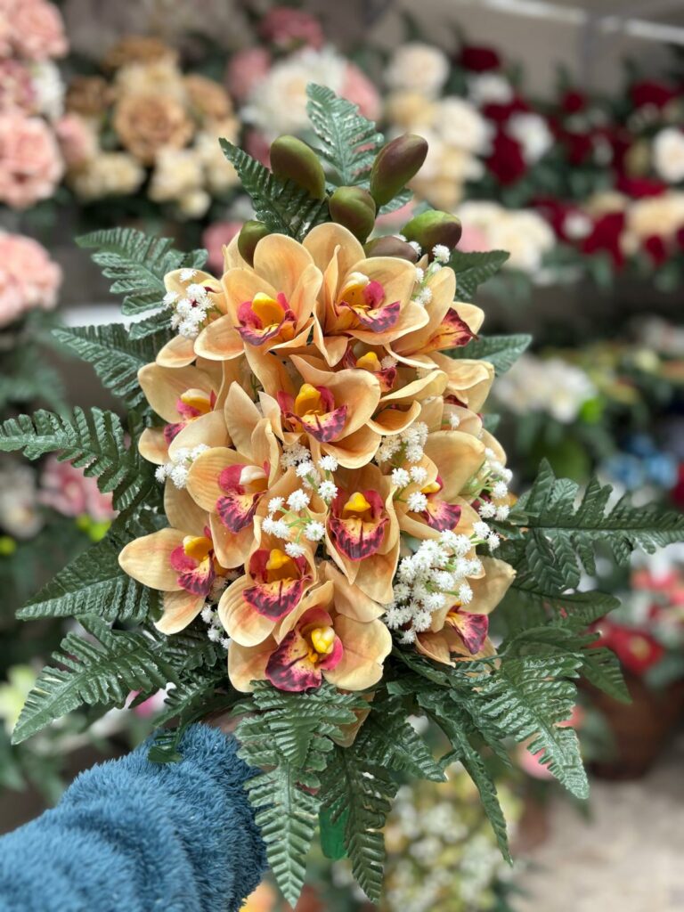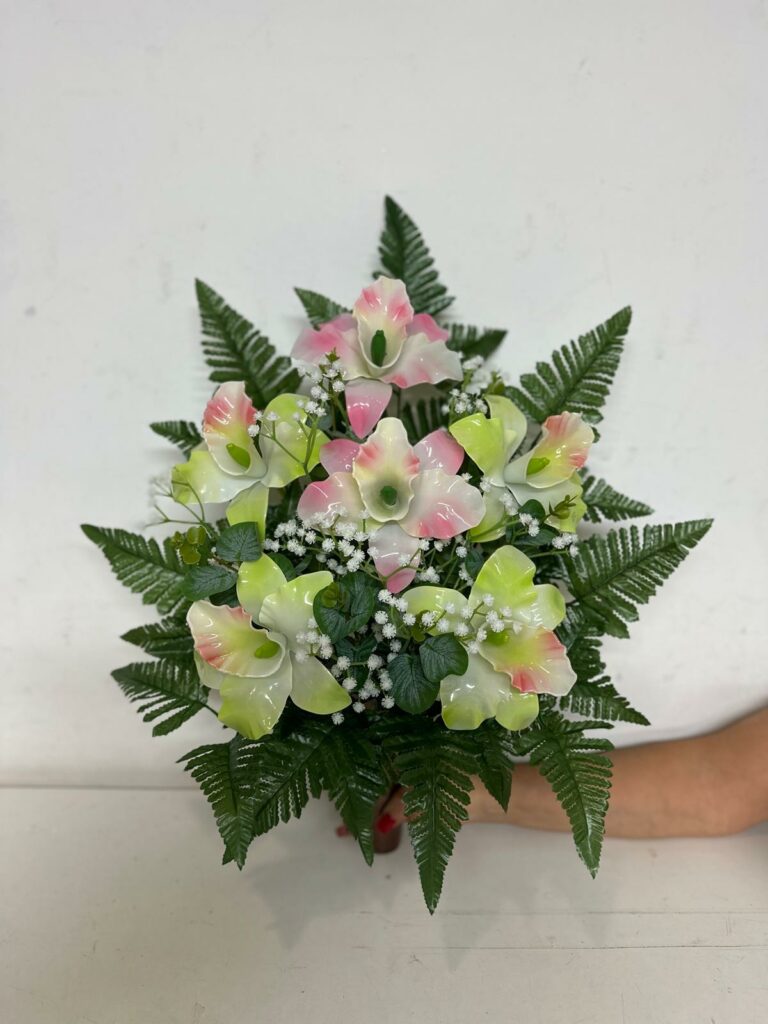 Fiori artificiali per cimitero mazzo con doppia orchidea colore salmone