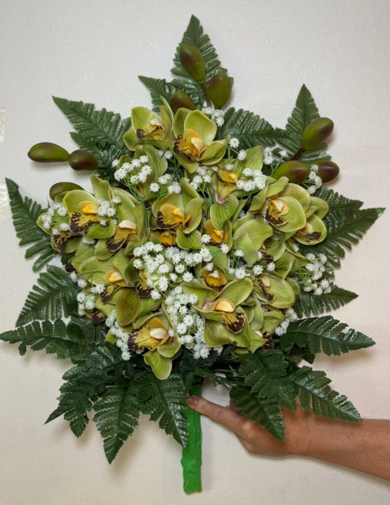 28,00 €Mazzo di Fiori artificiali per cimitero mazzo con orchidee in silicone verde con sfumature