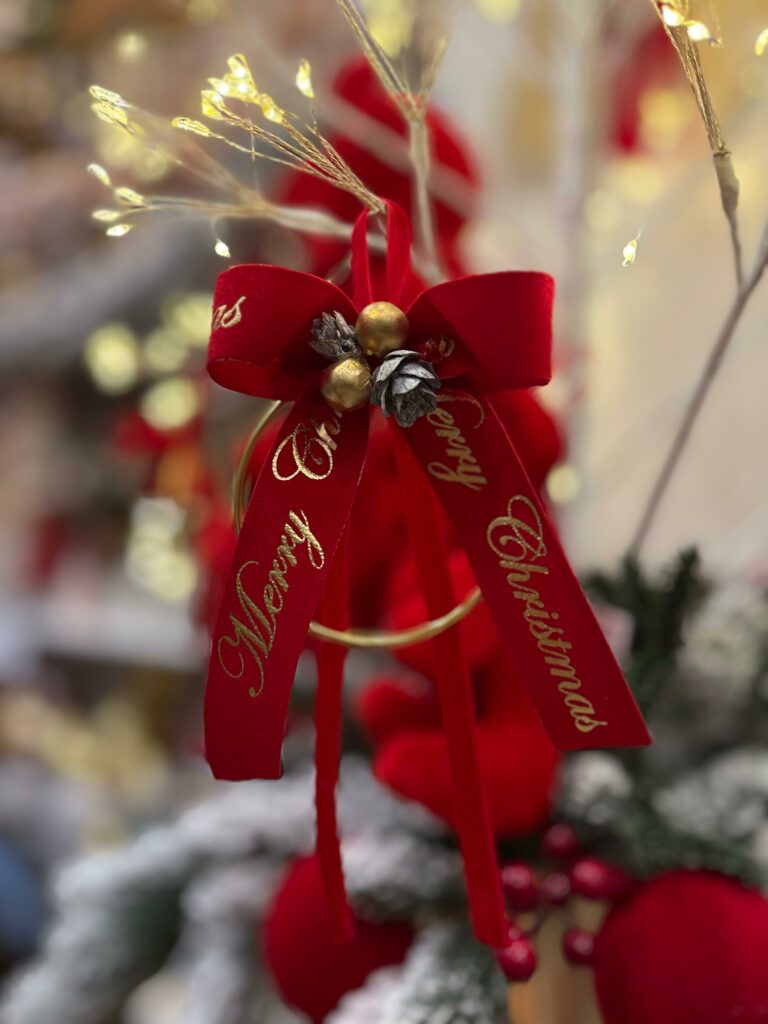 Fiocco natalzio con scritta Merry Christmas con cerchietto oro ⌀ 8