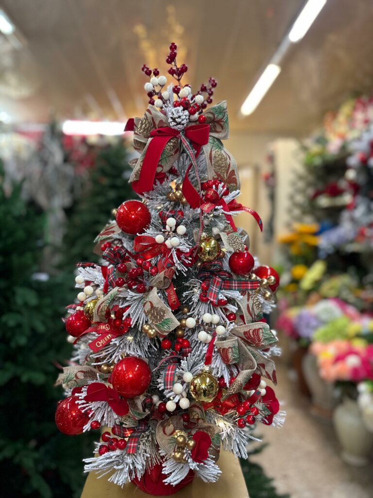 ALBERELLO NATALE VERDE CON DECORAZIONI ORO E ROSSE cm 65
