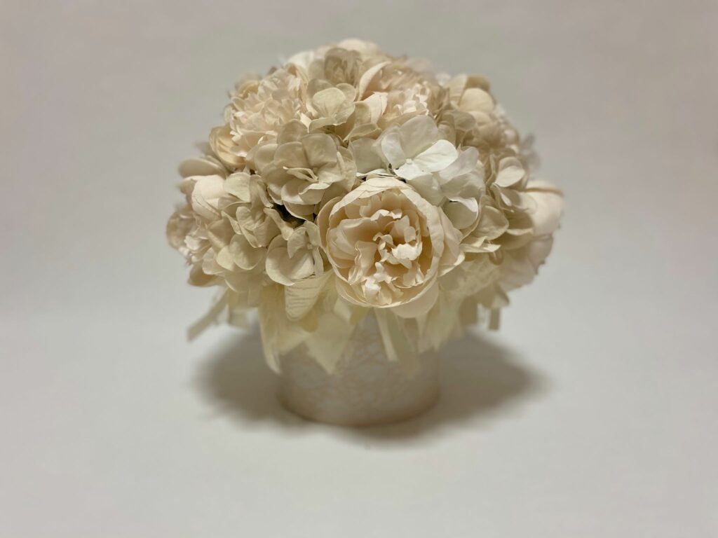 Cappelliera decorata con merletto peonie e ortensie – Colore avorio