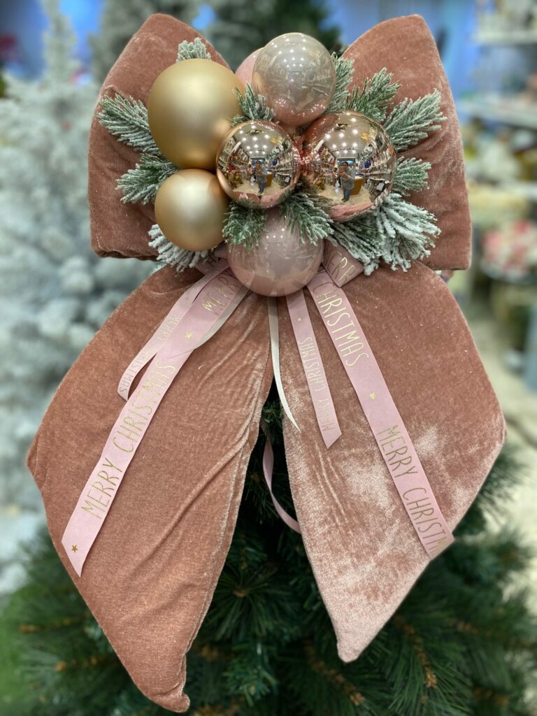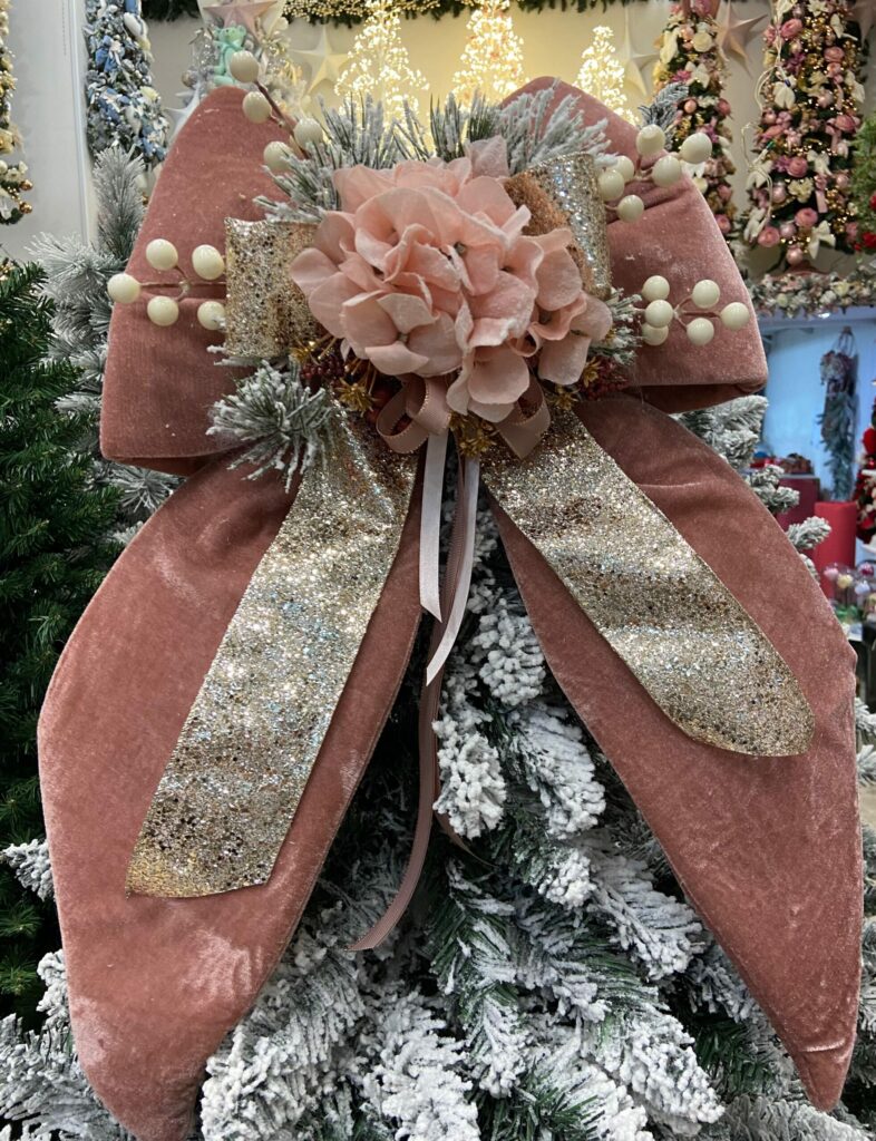 FIOCCO NATALIZIO IN VELLUTO CIPRIA CON ORTENSIA ROSA cm 60