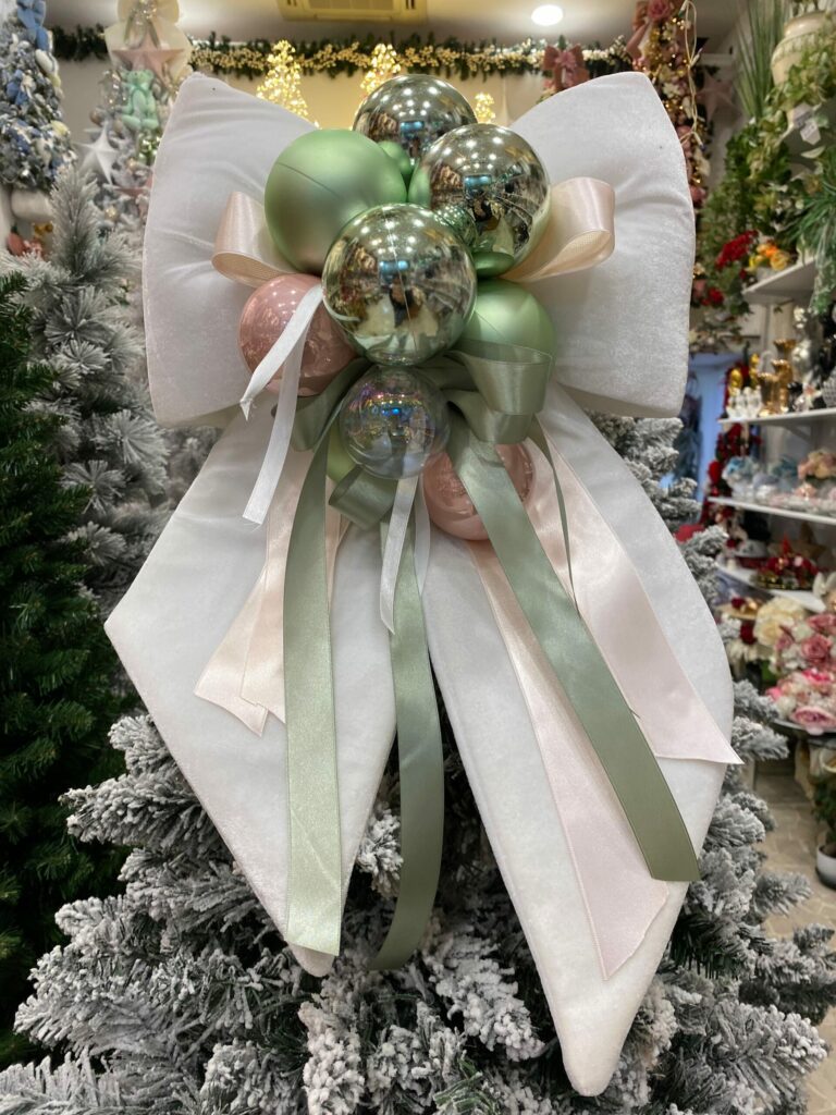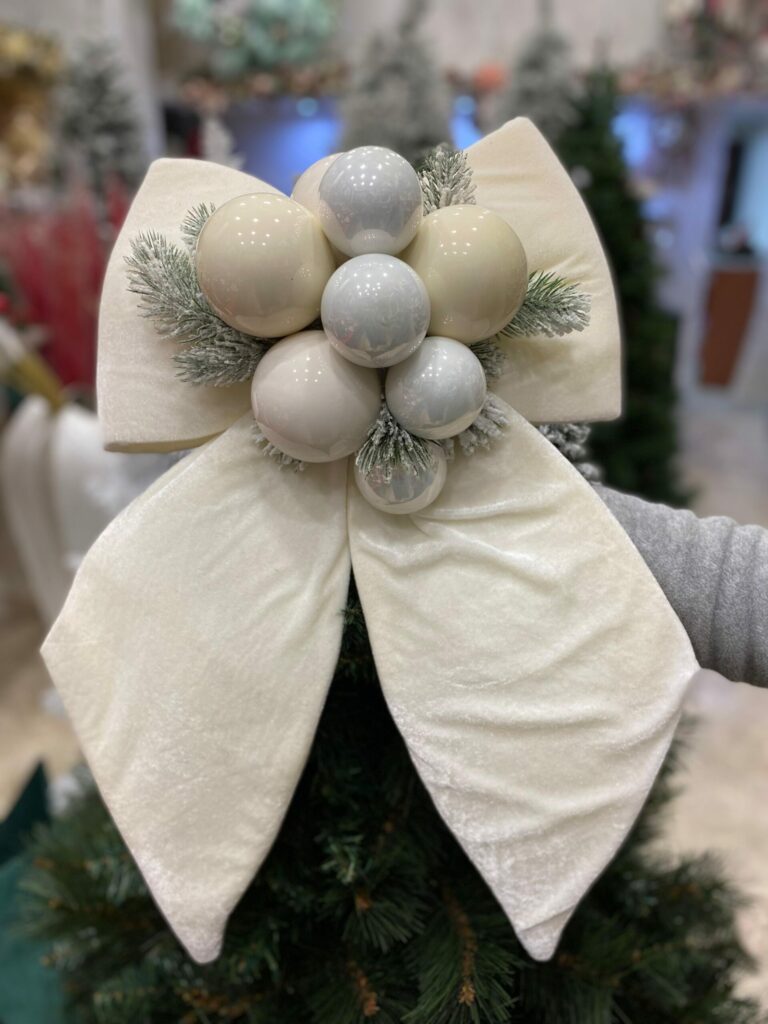 FIOCCO NATALIZIO IN VELLUTO BIANCO CON PALLINE cm 60