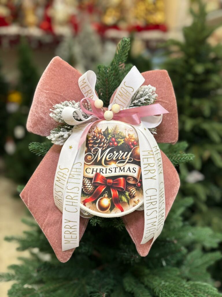 FIOCCO NATALIZIO ROSA CON DECORI NATALIZI E TAMBURELLA cm 25