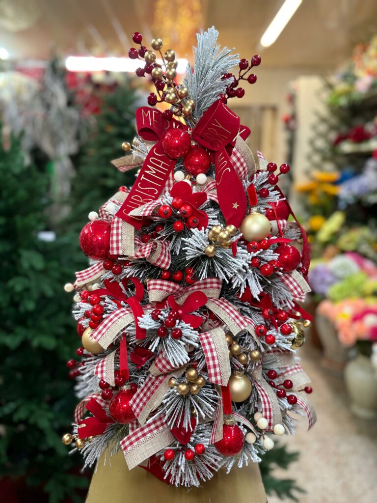 ALBERELLO NATALE CON DECORAZIONI ROSSO, ORO E VERDE h cm 70
