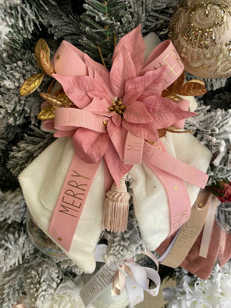 FIOCCO IN VELLUTO PANNA CON STELLA NATALIZIA ROSA cm 24