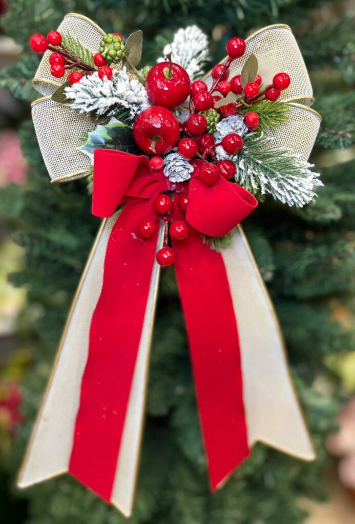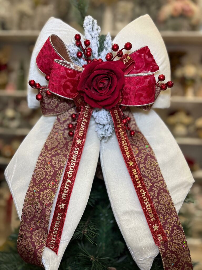 FIOCCO NATALIZIO IN VELLUTO PANNA CON ROSA IN VELLUTO E NASTRI cm 60